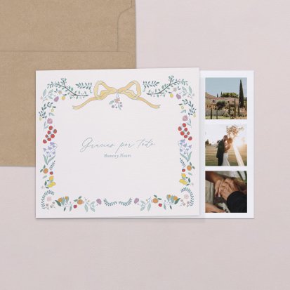 Año tras año nuestros colecciones mejoran, nuestras tarjetas de agradecimiento también. Tarjetas a la moda, inspiradas en nuevos formatos, nuevos diseños... Aquí encontráreis los últimos.